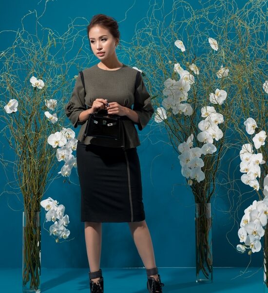 Bộ áo và chân váy nữ cổ sam và chân váy xẻ trước