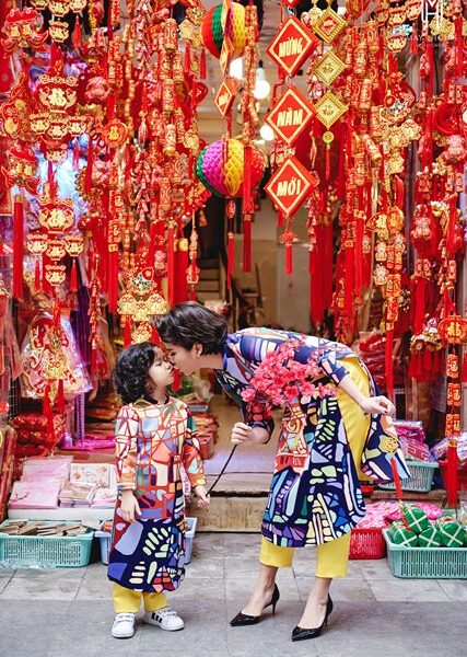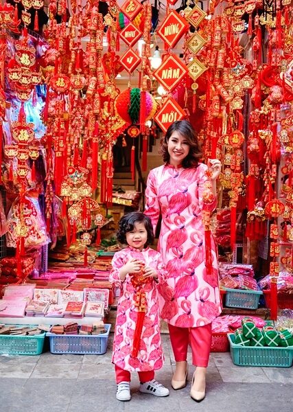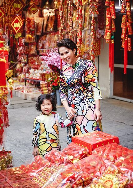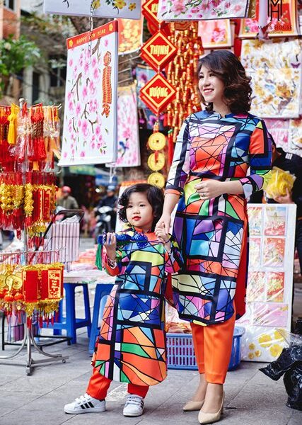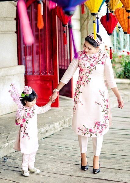 Bộ áo dài bé gái hồng hạc cách tân 22