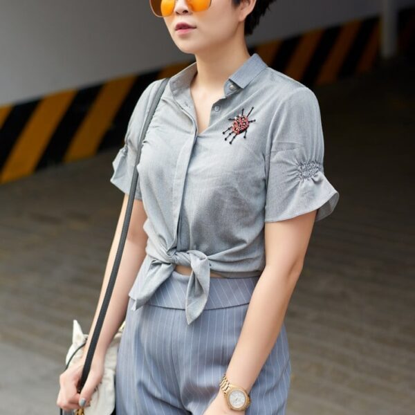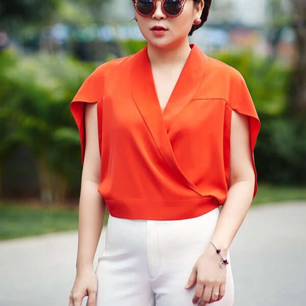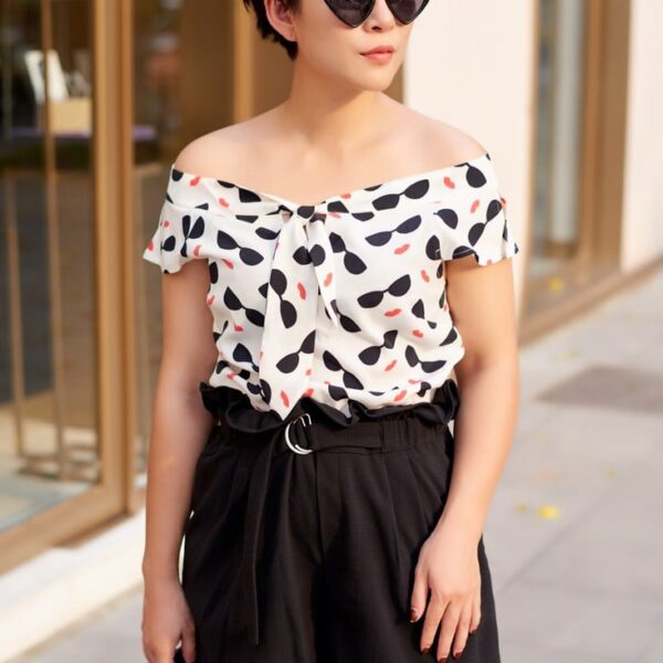 Áo kiểu nữ trễ vai hoạ tiết mắt kính đẹp