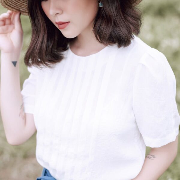 Áo kiểu nữ trễ vai hoạ tiết mắt kính