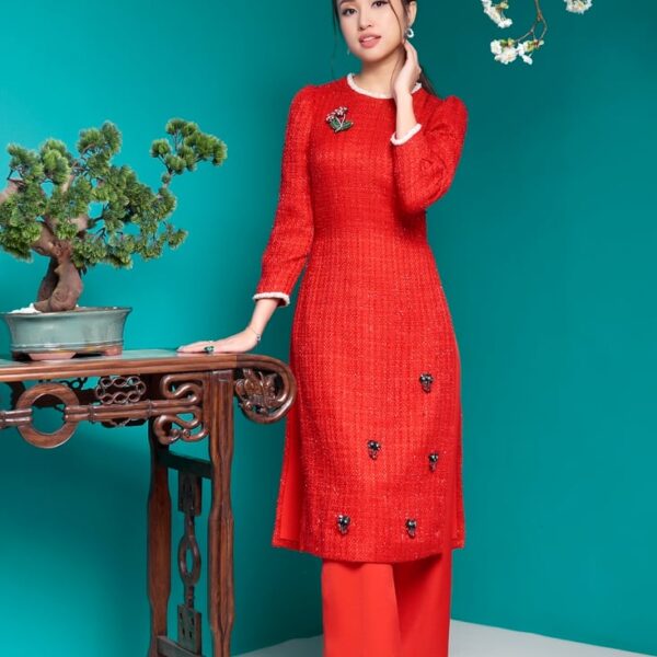 Bộ áo dài nữ Sequin đính sticker cách tân đỏ