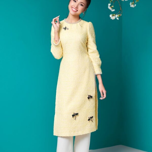 Bộ áo dài nữ Sequin đính sticker cách tân vàng