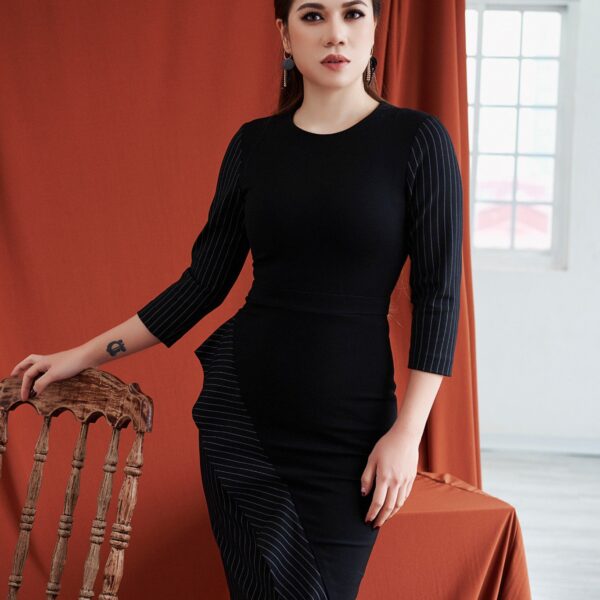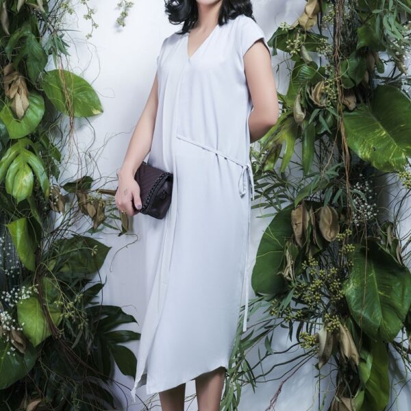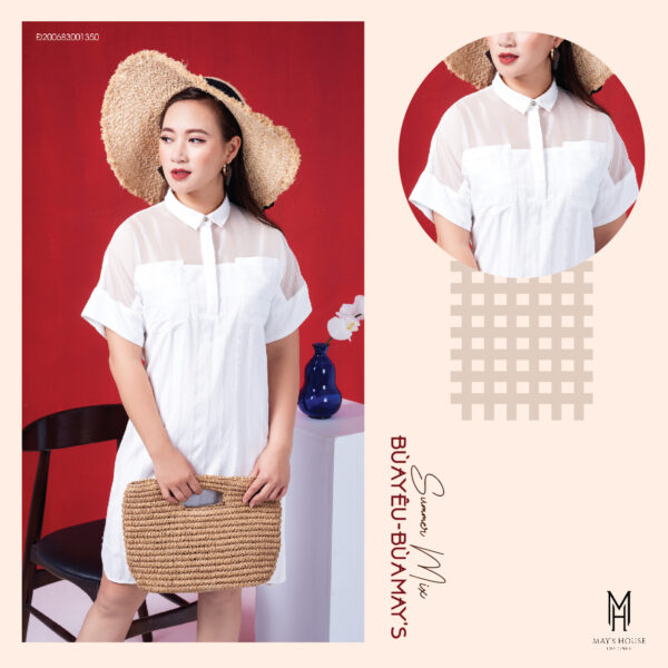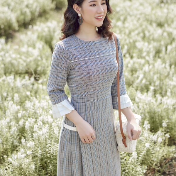 Đầm suông tay lửng ngực bèo Ghi sáng