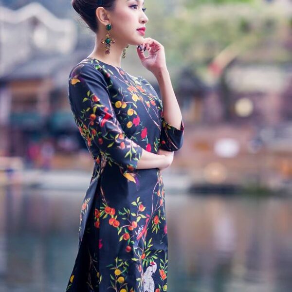 Bộ áo dài nữ hoạ tiết hoa cách tân