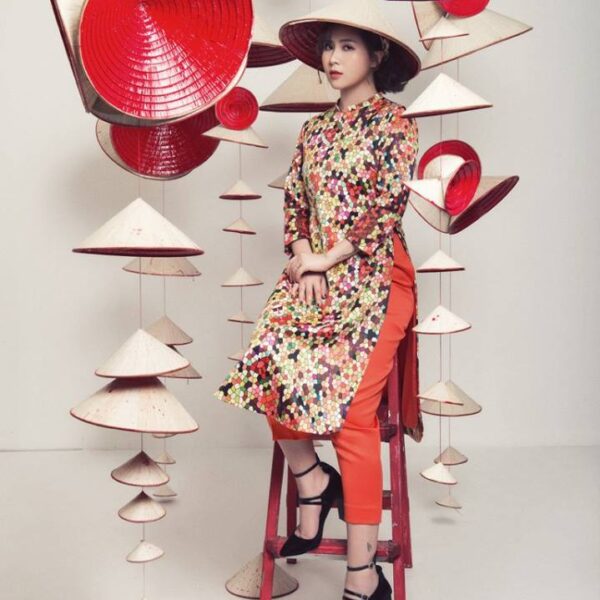 Bộ áo dài nữ Sequin đính sticker cách tân