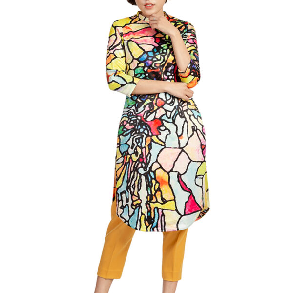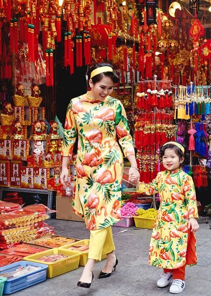 Bộ áo dài nữ Sequin đính sticker cách tân vàng