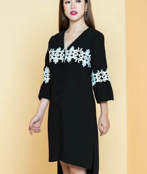 Đầm suông tay lửng ngực bèo Ghi sáng