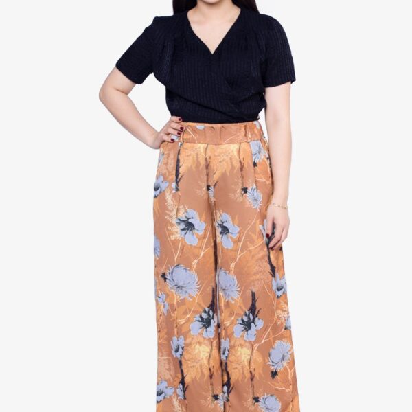 Quần ống suông nữ hoa Nâu