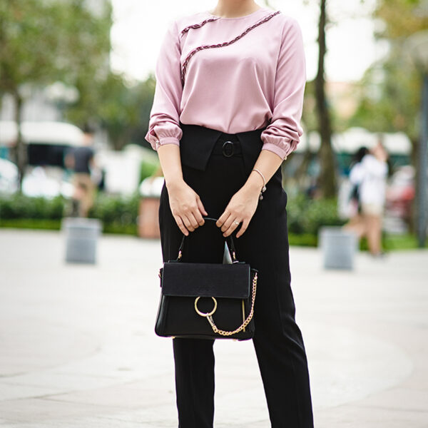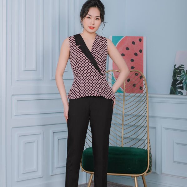 Quần nữ peplum cạp phối khuyên đen