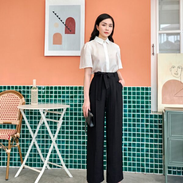Quần suông ống rộng thắt nơ eo