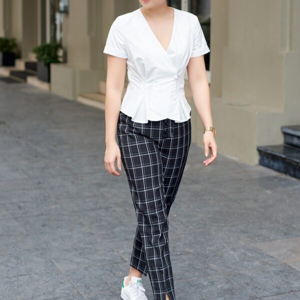 Quần ôm kẻ caro xẻ gấu