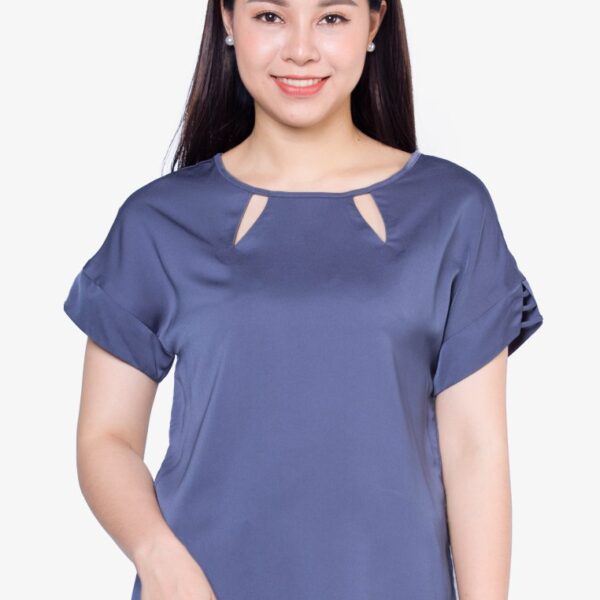 Áo kiểu nữ hở tay phối bèo màu ghi