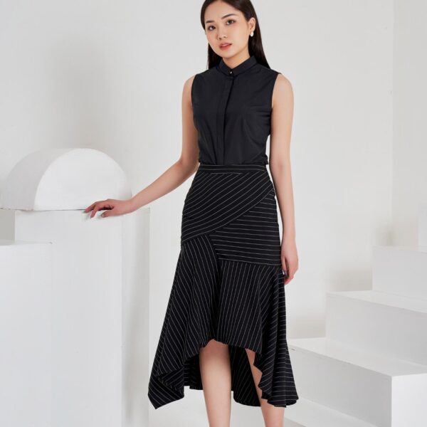 Áo kiểu nữ cổ v thắt nơ tay dài đen