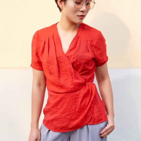 Áo kiểu nữ croptop cổ xẻ v đan dây