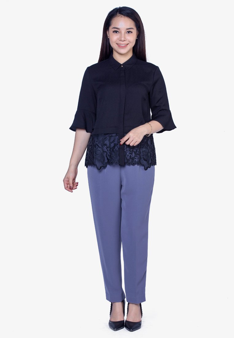 Áo nữ 020137 phối ren được may từ chất liệu vải mềm, nhẹ, cùng đường may tỉ mỉ, tinh tế, mang lại cảm giác thoải mái, nhẹ nhàng khi mặc. Áo cổ bẻ, tay lỡ loe, phối ren hoa tạo điểm nhấn, toát lên nét thanh lịch, duyên dáng cho phái đẹp.