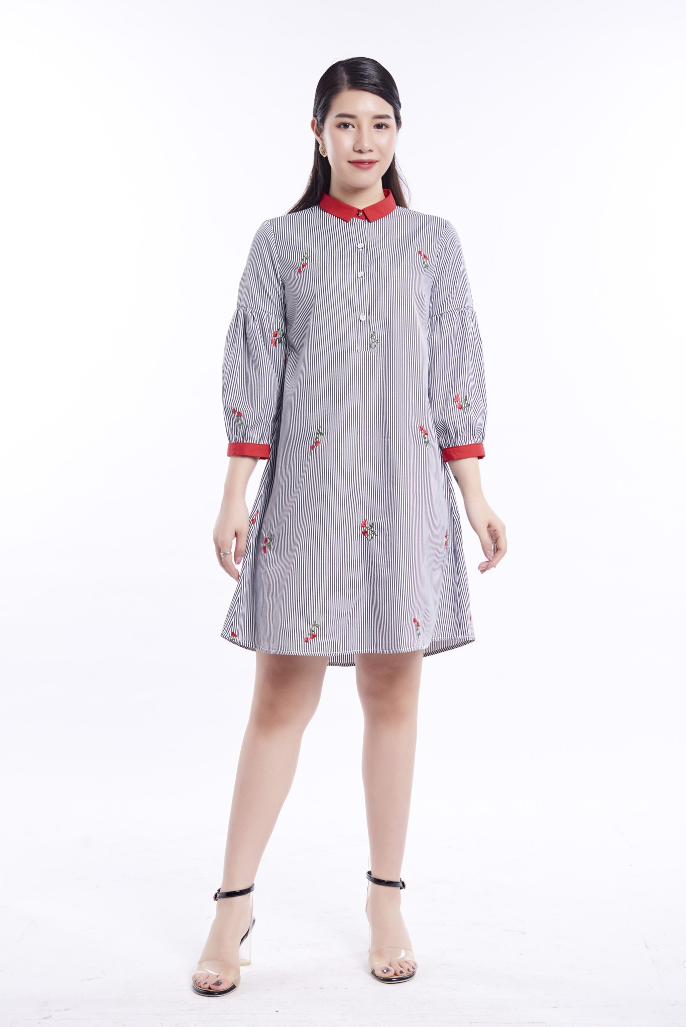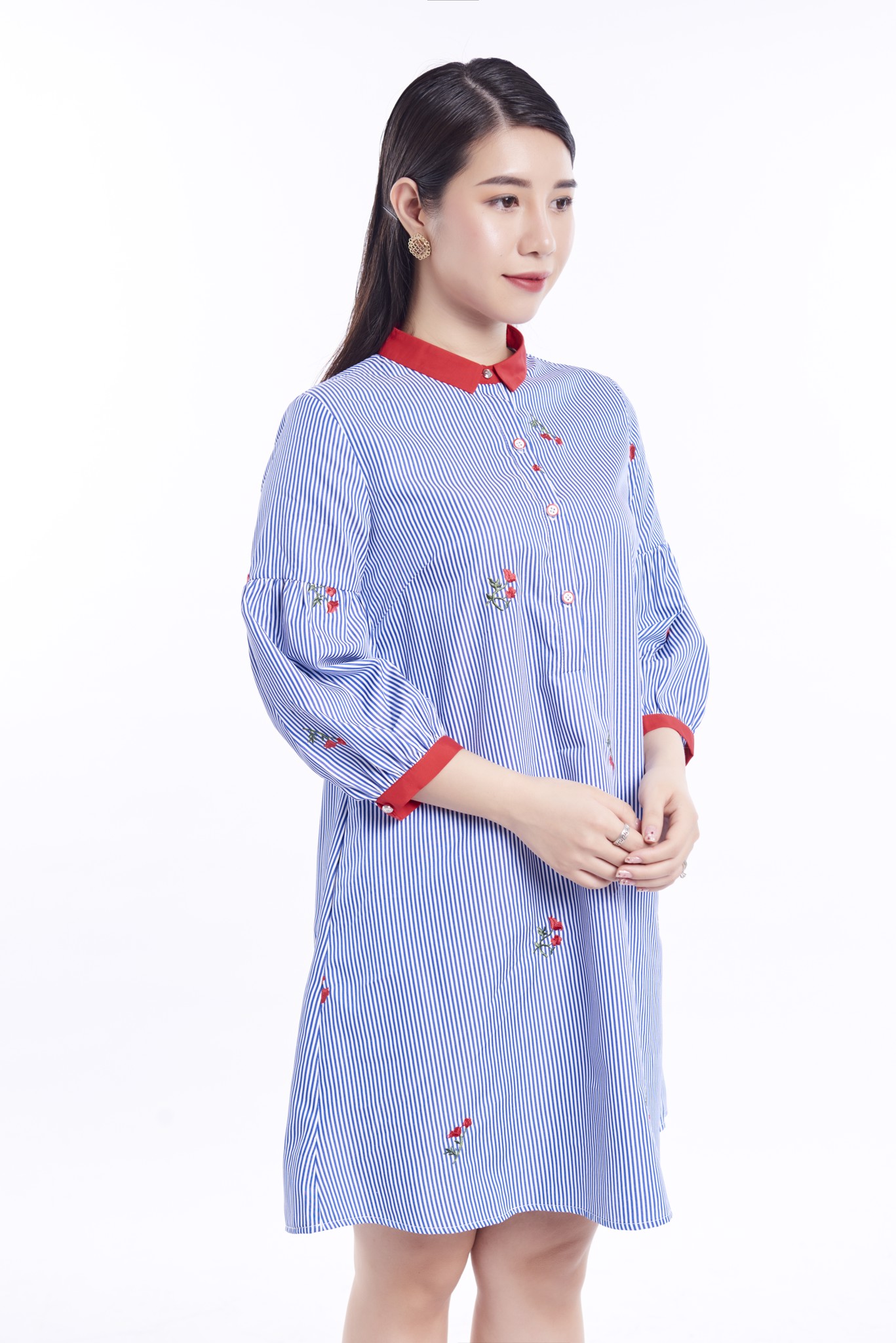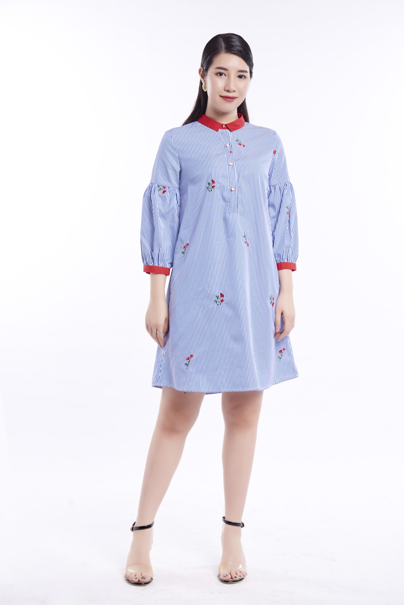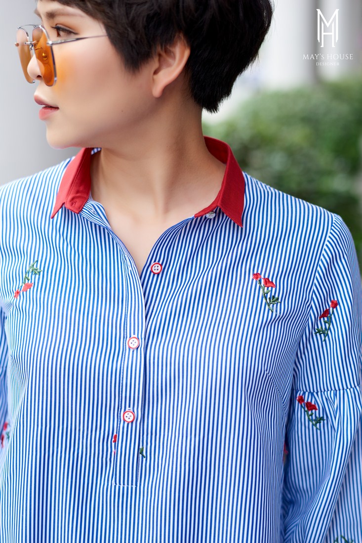 Dáng váy suông thư thả phù hợp với khách hàng có dáng người hơi đậm, cổ đức bổ trụ cài cúc thanh lịch. Điểm nhấn là phần tay dài bồng nhẹ, giúp người mặc che được mọi khuyết điểm cánh tay, đem lại sự thoải mái, kín đáo. Chất liệu mỏng nhẹ, mát. Sản phẩm mang tính năng động trẻ trung, hiện đại, thích hợp mặc đi làm, đi chơi.