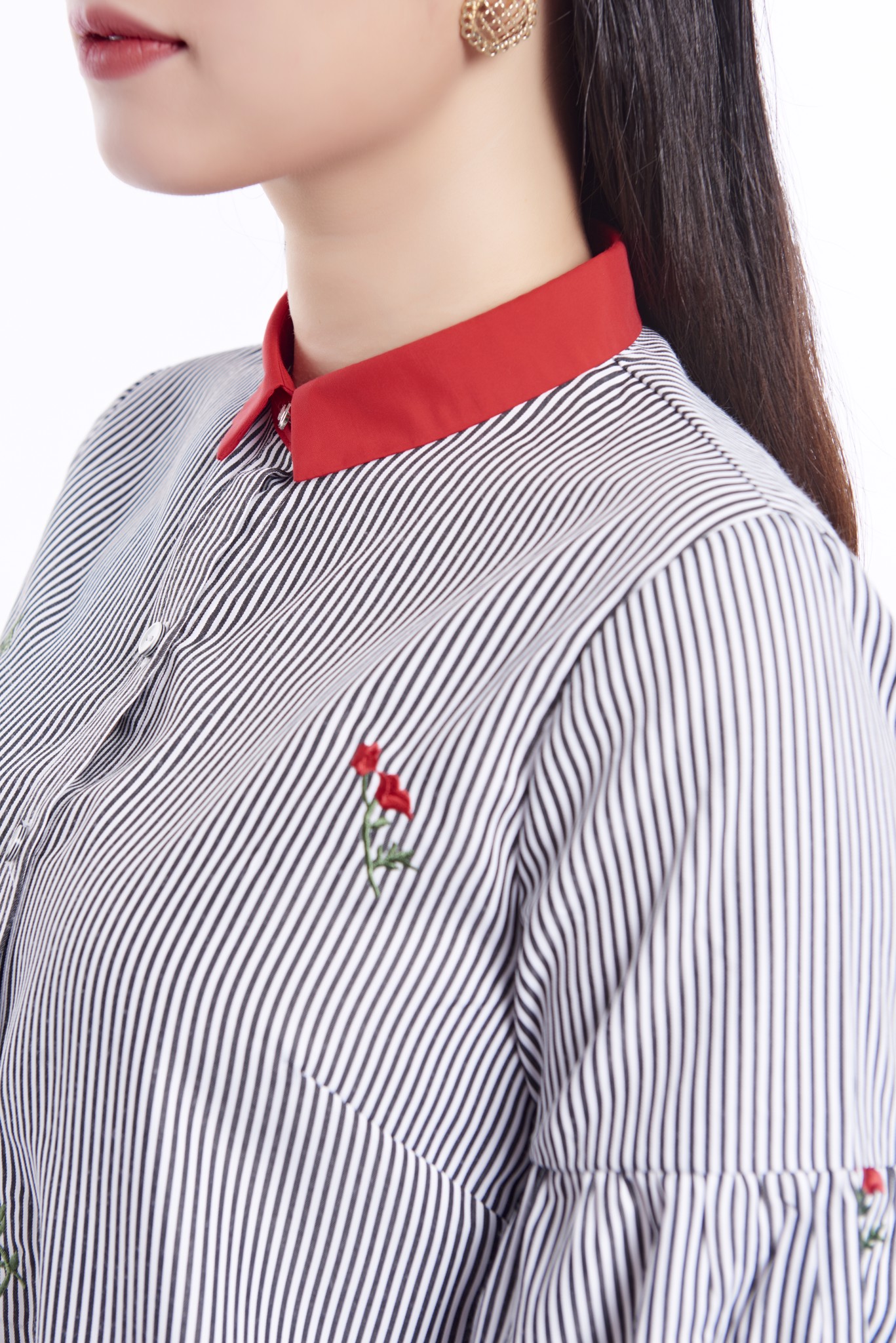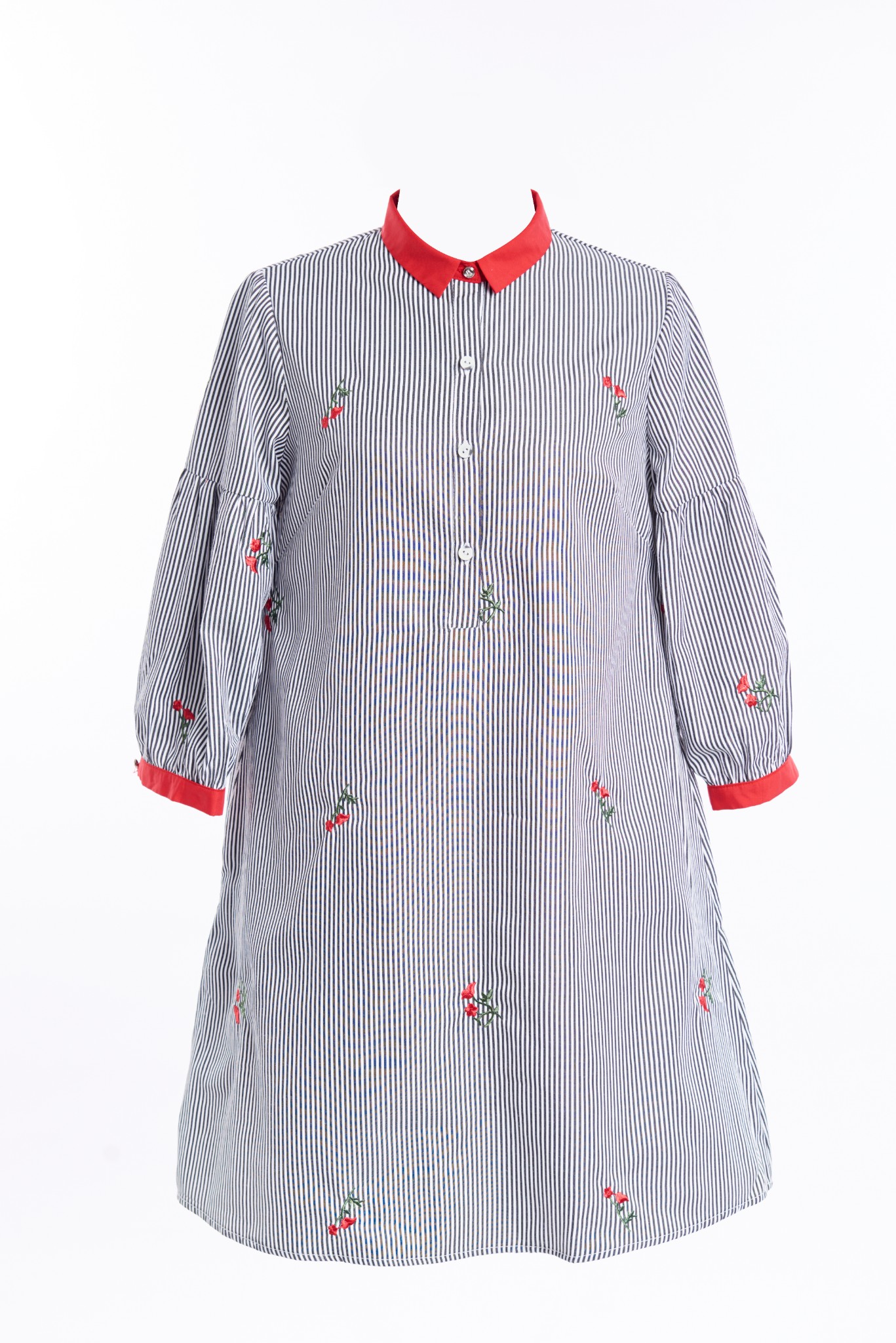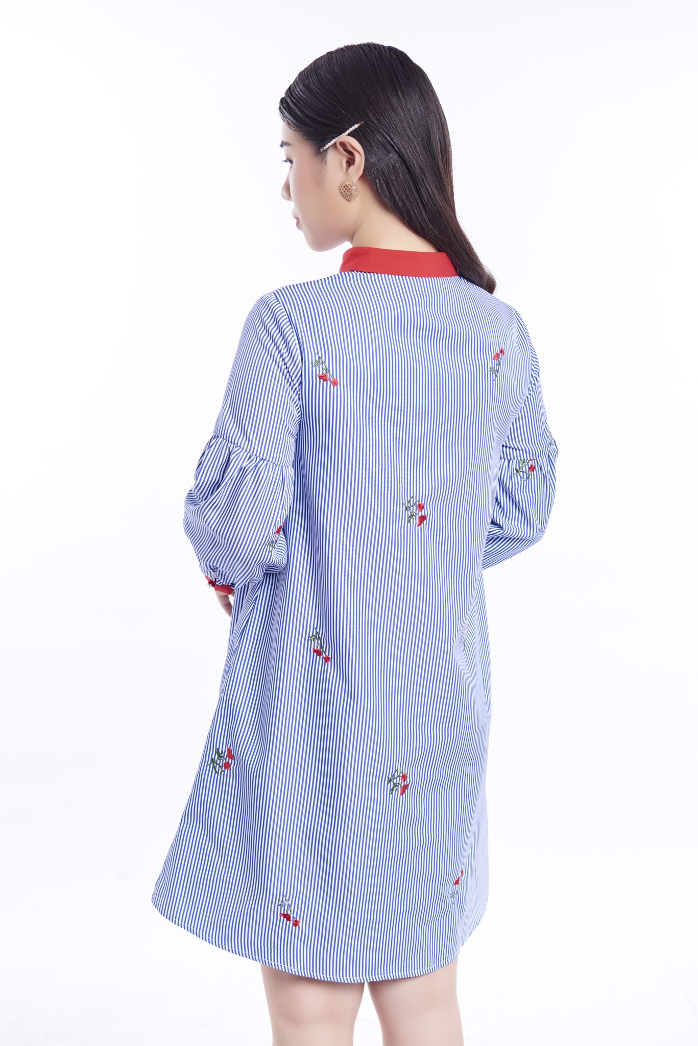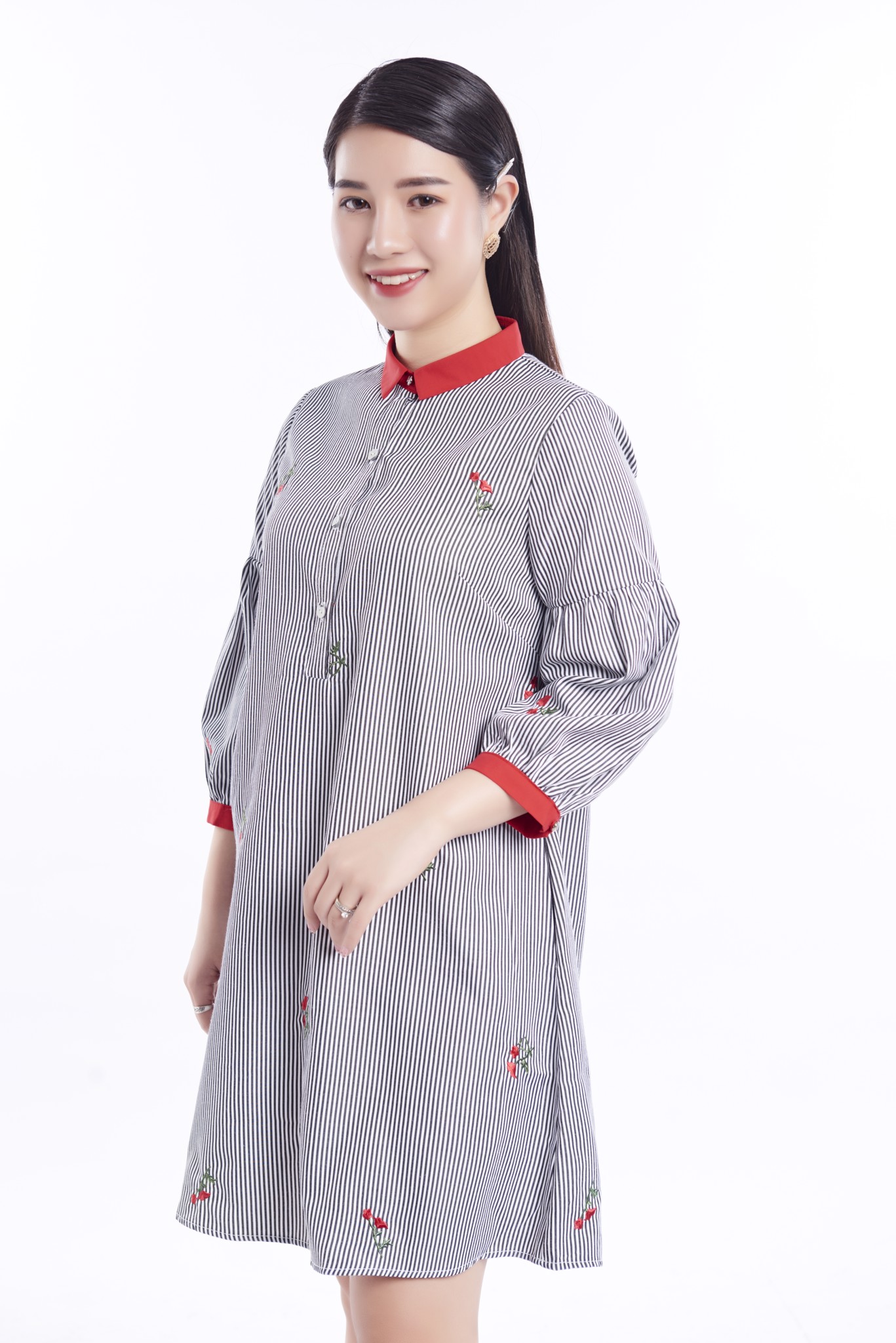 Dáng váy suông thư thả phù hợp với khách hàng có dáng người hơi đậm, cổ đức bổ trụ cài cúc thanh lịch. Điểm nhấn là phần tay dài bồng nhẹ, giúp người mặc che được mọi khuyết điểm cánh tay, đem lại sự thoải mái, kín đáo. Chất liệu mỏng nhẹ, mát. Sản phẩm mang tính năng động trẻ trung, hiện đại, thích hợp mặc đi làm, đi chơi.